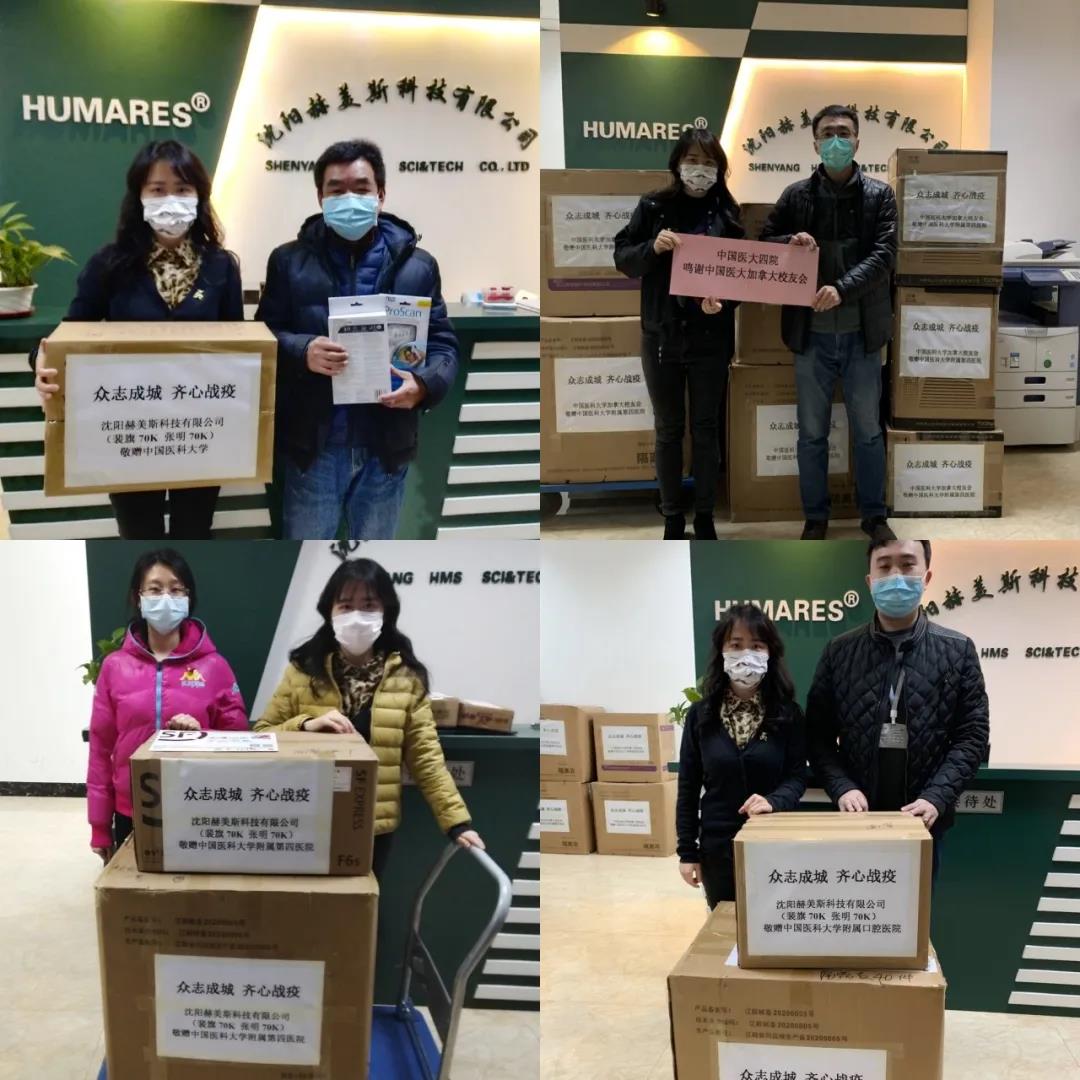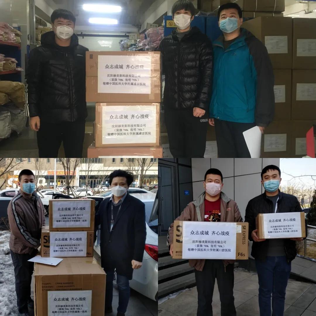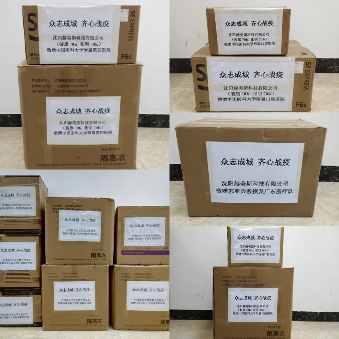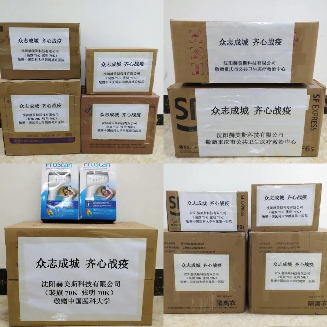 因?yàn)榉雷o(hù)物資缺乏,前線醫(yī)護(hù)人員不斷感染病毒,全國人民心急如焚,赫美斯人也積極行動(dòng)起來通過各種渠道,從中國、美國、加拿大、德國緊急采購了醫(yī)用外科口罩、醫(yī)用N95口罩、隔離衣、防護(hù)頭罩、防護(hù)面罩、進(jìn)口醫(yī)用防護(hù)鏡、進(jìn)口醫(yī)用額溫槍、消毒液等一大批防護(hù)物資及醫(yī)療設(shè)備和耗材,緊急馳援捐贈(zèng)給中國醫(yī)科大學(xué)各附屬醫(yī)院醫(yī)療隊(duì)及湖北前線抗疫將士,為戰(zhàn)疫助一臂之力。